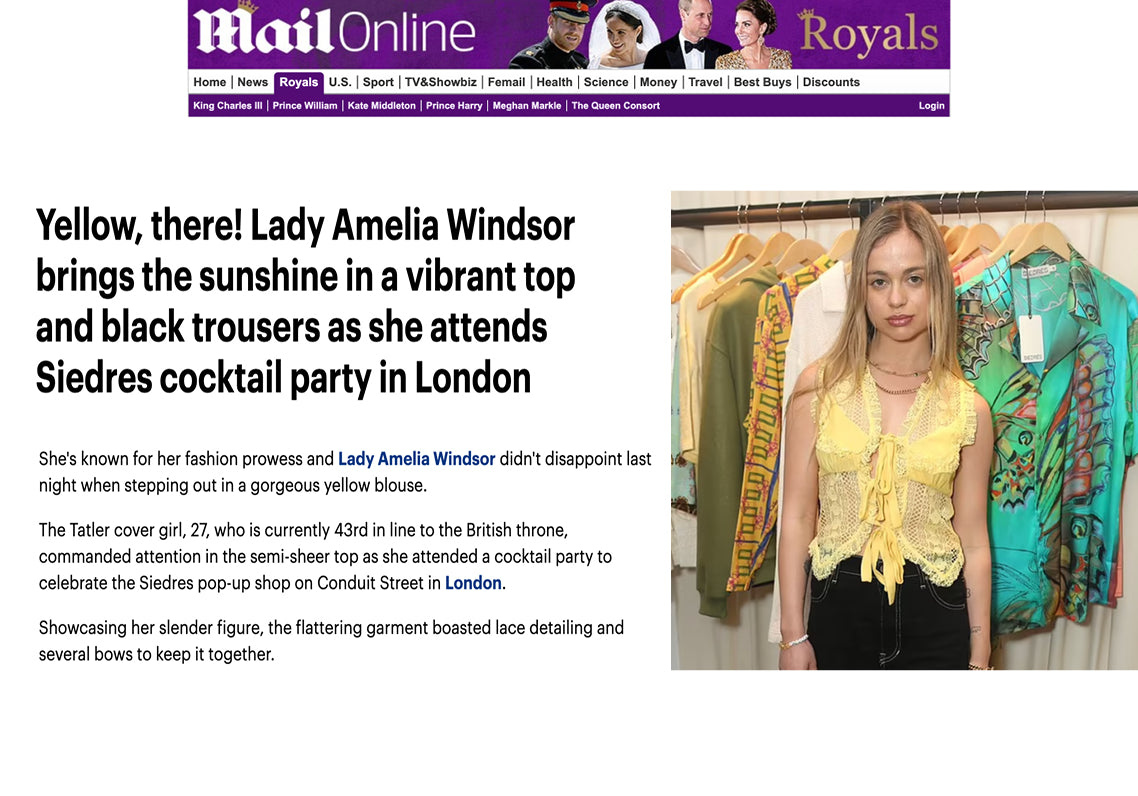 Lady Amelia Windsor brings the sunshine in a vibrant top and black trousers as she attends Siedres cocktail party in London.