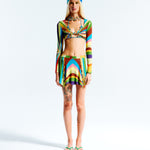 Sun-ray knit mini skirt with contrast stitches