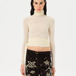 ALBA - Fitted long-sleeve mesh top with side tie detail