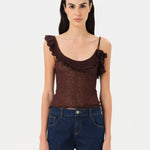 Sheer mesh top with ruffle detail