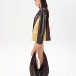 - Structured leather jacket in contrasting panels