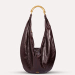Oversized leather hobo bag with metal top handle