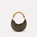 Suede hobo bag with metal top handle
