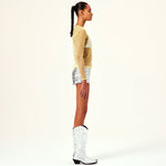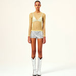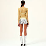 Sheer long sleeve top with crystals