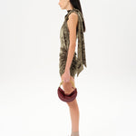 - Gathered neckline with long scarf tie at the back