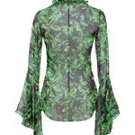 • Printed trasnparent shirt with ruffle details