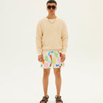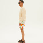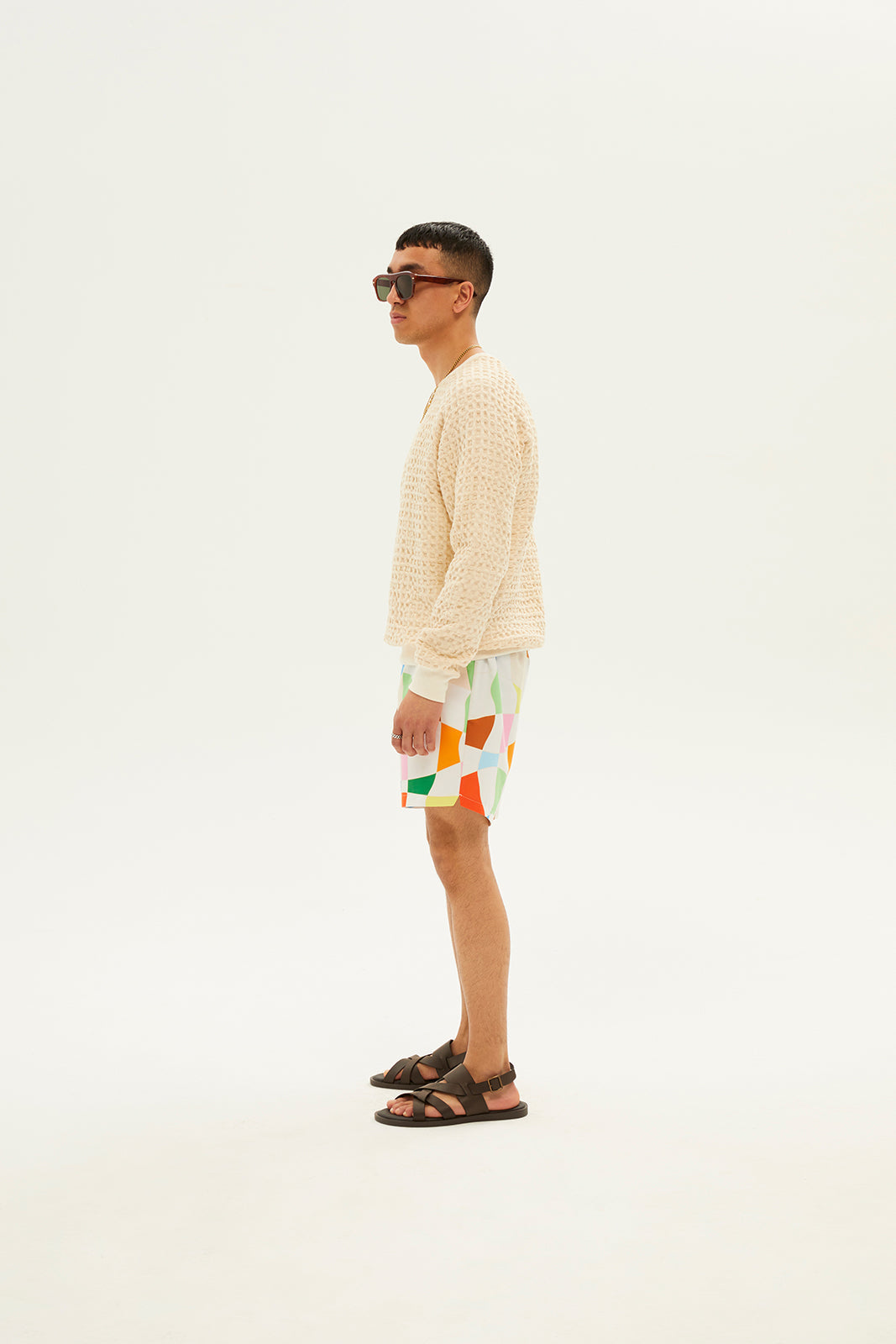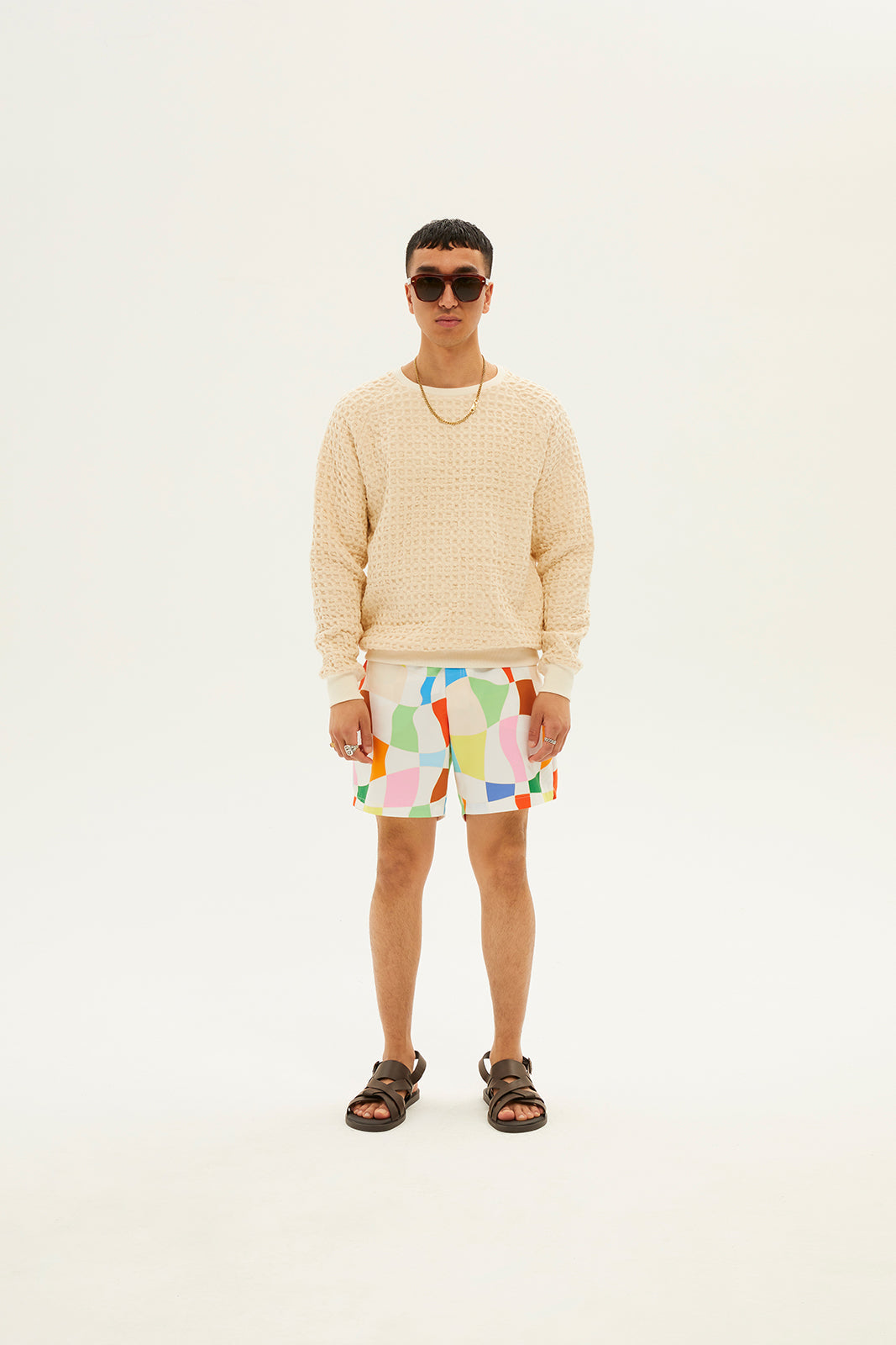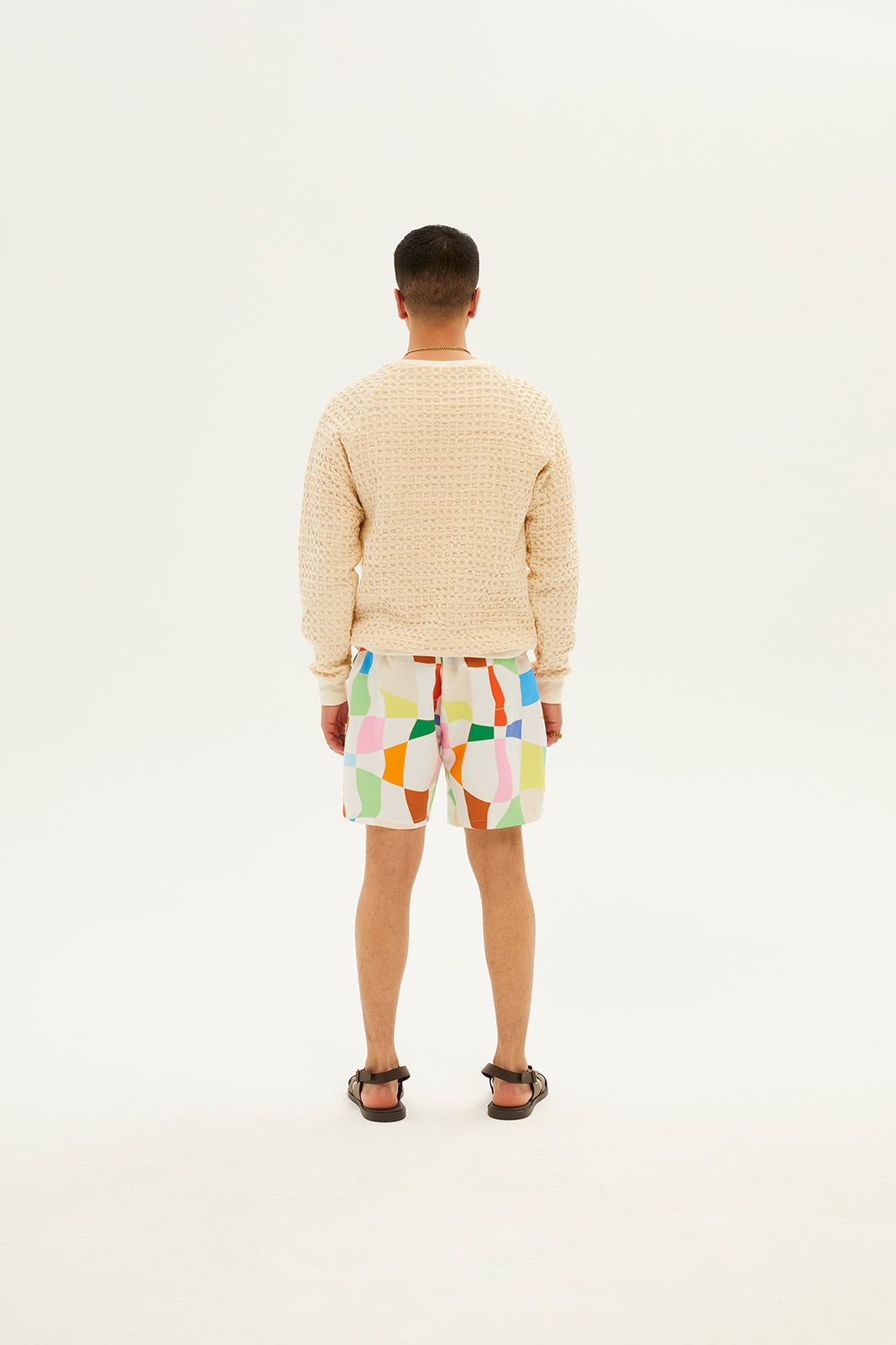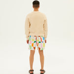 - Distorted check print swim shorts