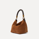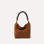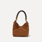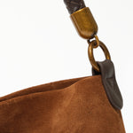 Main body: %100 Calf Suede Handle #1: Metal, Handle #2: Woven Gabardine Lining