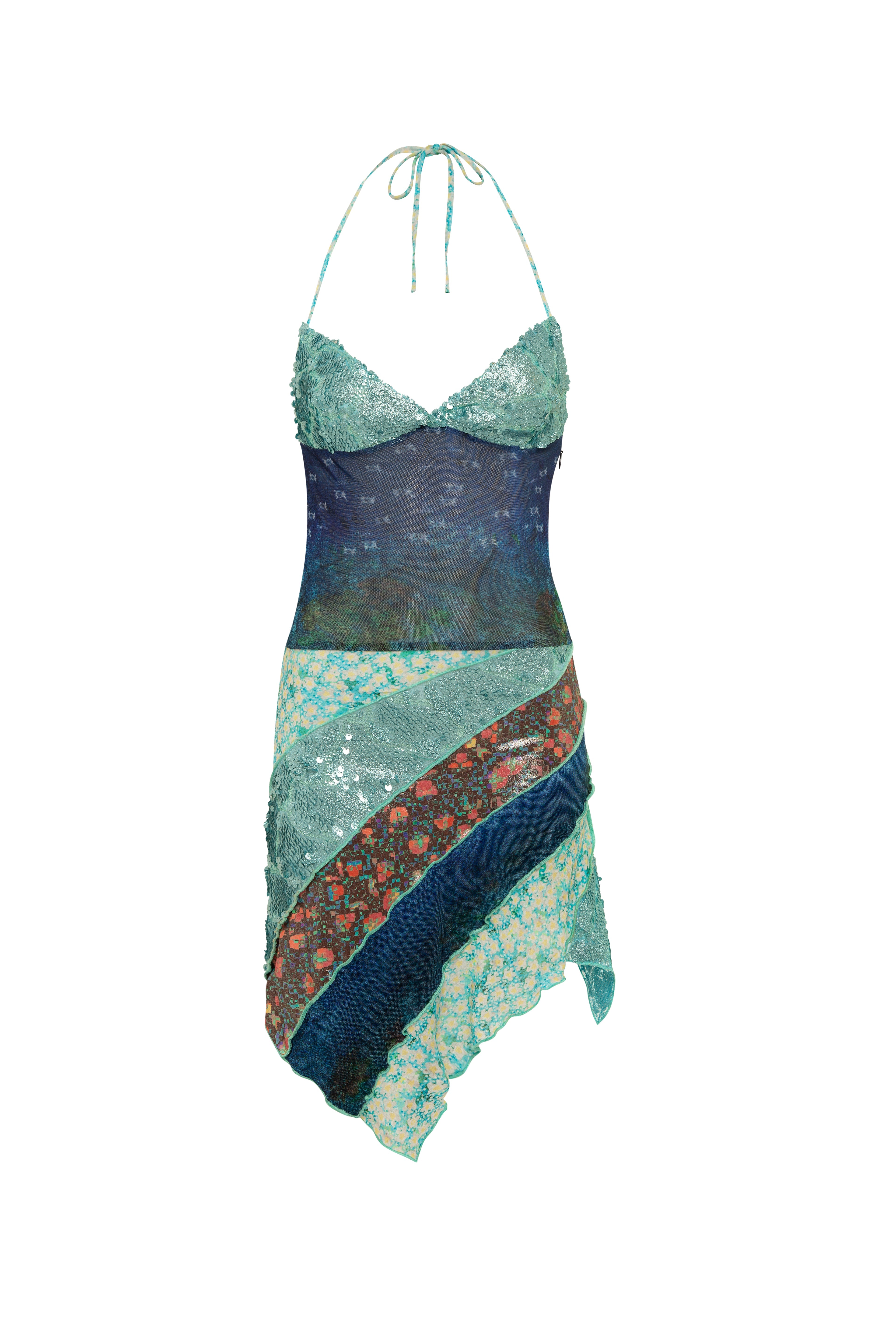 Asymmetric patchwork mini dress