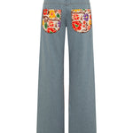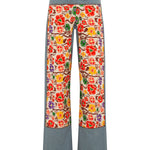Floral layered denim pants