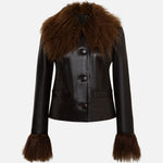 100% Sheep Leather, Collar & Cuffs: 100% Tibetan Fur, Lining: 100% Polyester