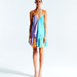 Handkerchief color-block mini dress