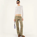 Floral printed low-rise straight-leg pants
