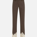 Wool blend pants with lace-trimmed hem