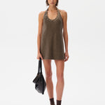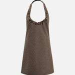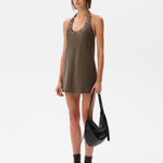 Halter-neck mini dress with embroidered neckline